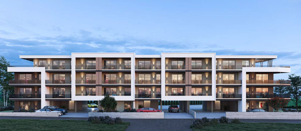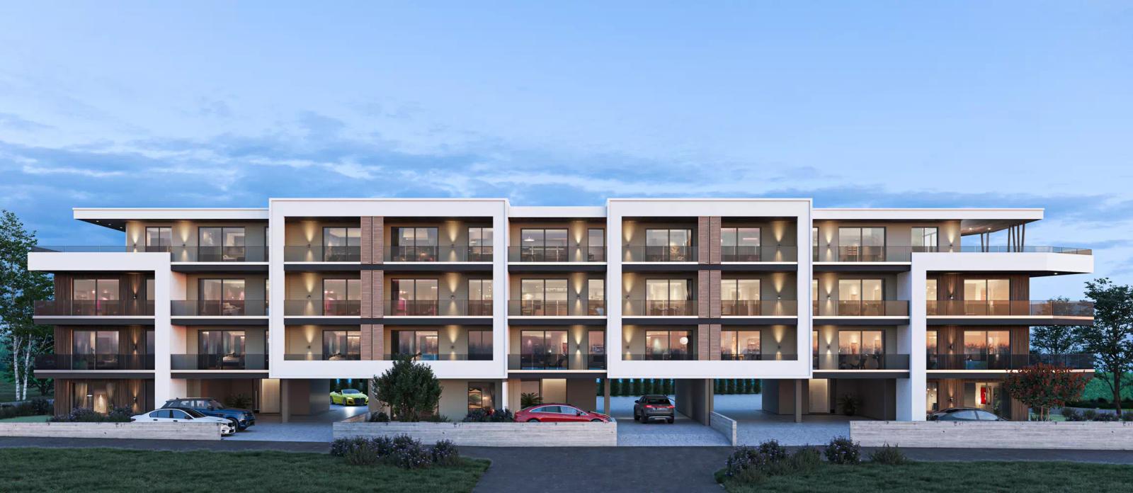 U Taru je projektiran kompaktan stambeni sklop koji se sastoji od tri međusobno povezane zgrade, čiji je volumen s 29 stambenih jedinica dinamično oblikovan kroz horizontalne poteze terasa, staklene ograde i tople drvene obloge.