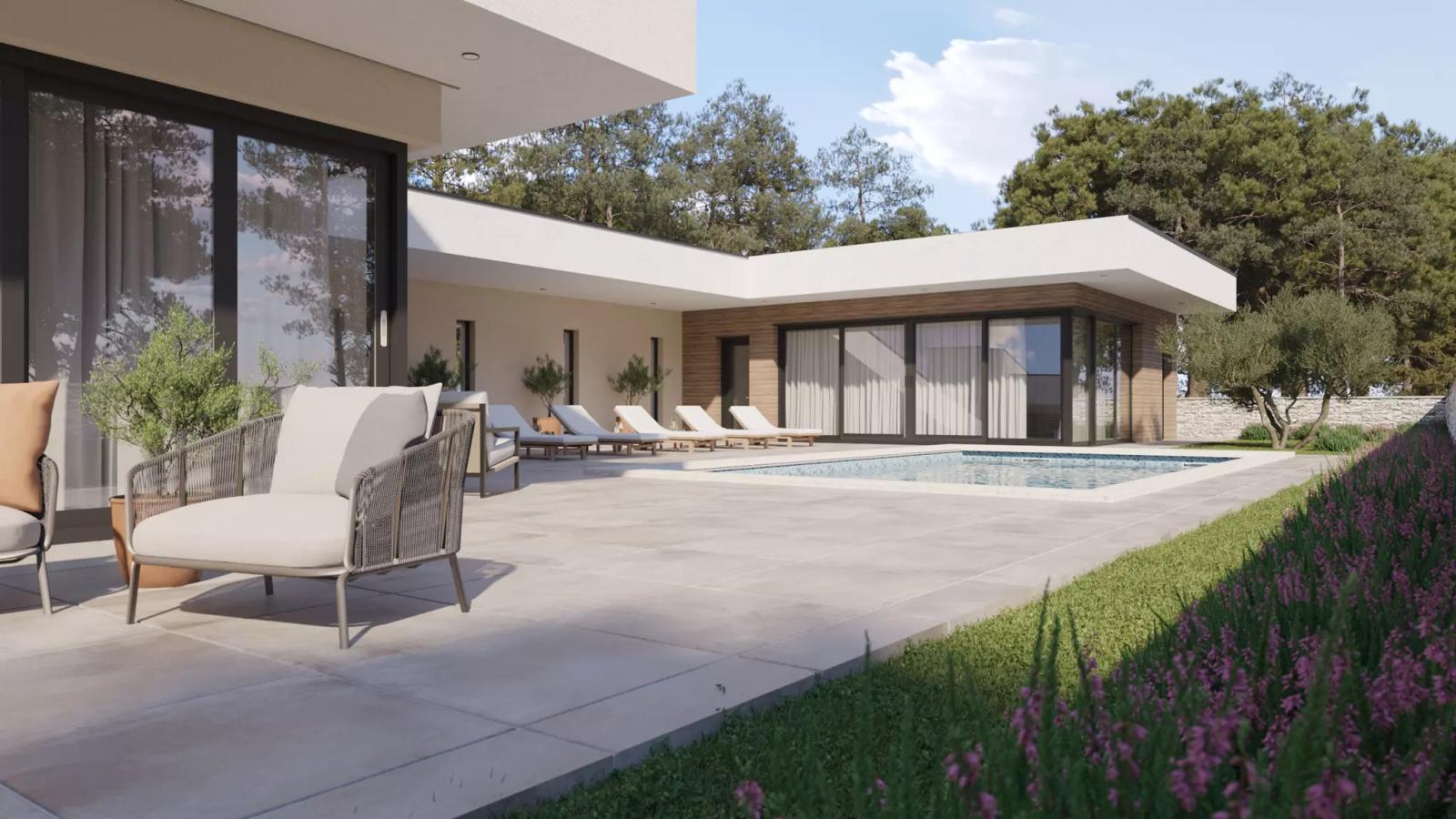 Vila je smještena na rubu maslinika, oblikovana kao suvremeni odgovor na mediteranski krajolik. Središnji atrij funkcionira kao zaštićena oaza koja stanarima jamči intimu, a vanjski obrisi objekta čuvaju izvorni identitet i vizure lokacije.
