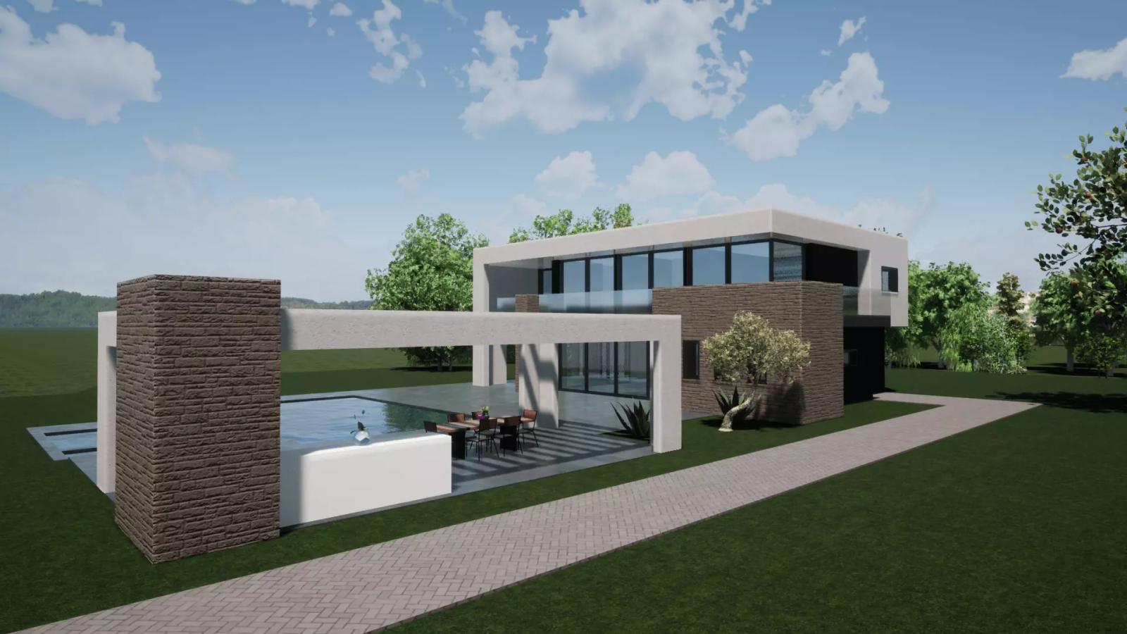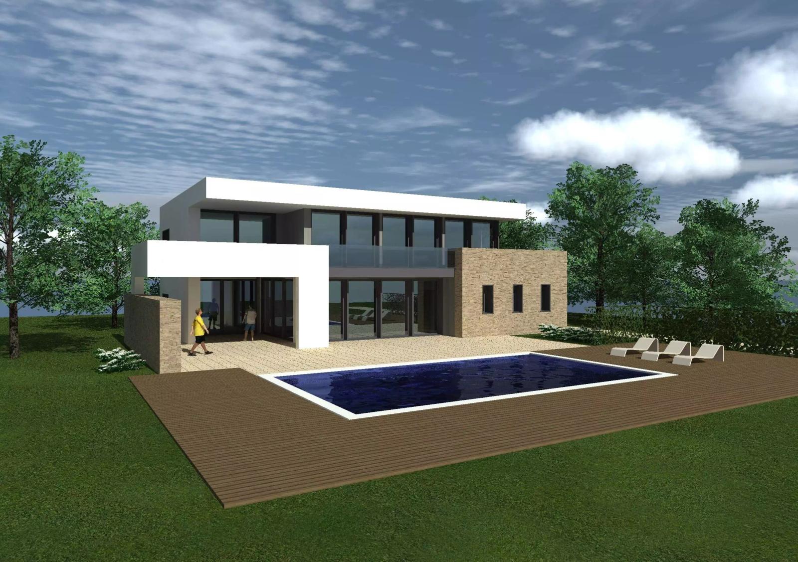 Kombinacijom prirodnih materijala i čistih linija, vila na moderan način oživljava tradicionalne motive. Oblikovana je tako da se svojim izgledom i veličinom prirodno uklapa u okolni krajolik.
